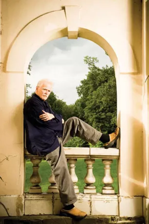 He holds a book in his hand, it�s open, pages riffled by wind.